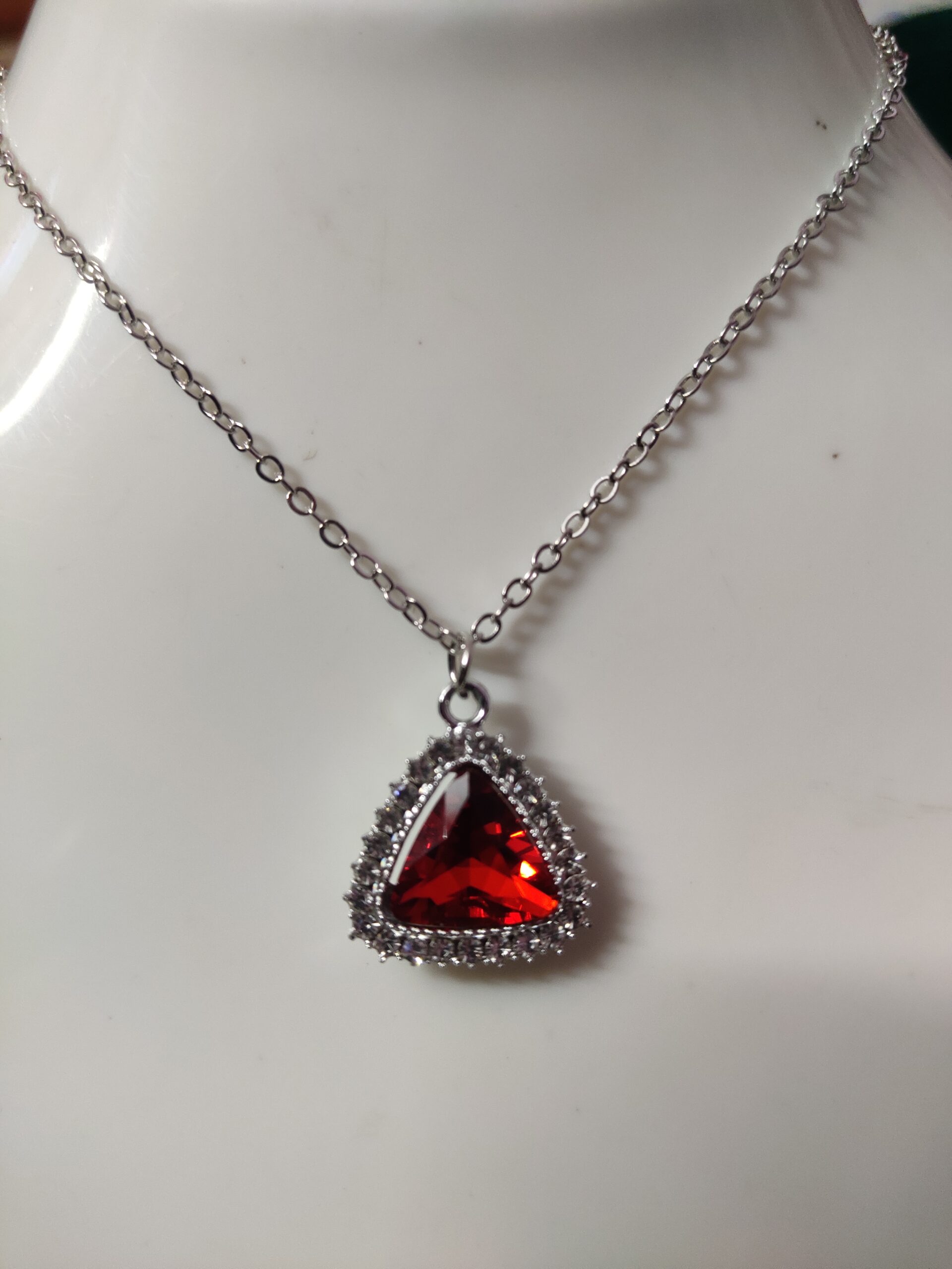 Crimson Glow Trillion-Cut Pendant Necklace – A Statement of Passion & Elegance