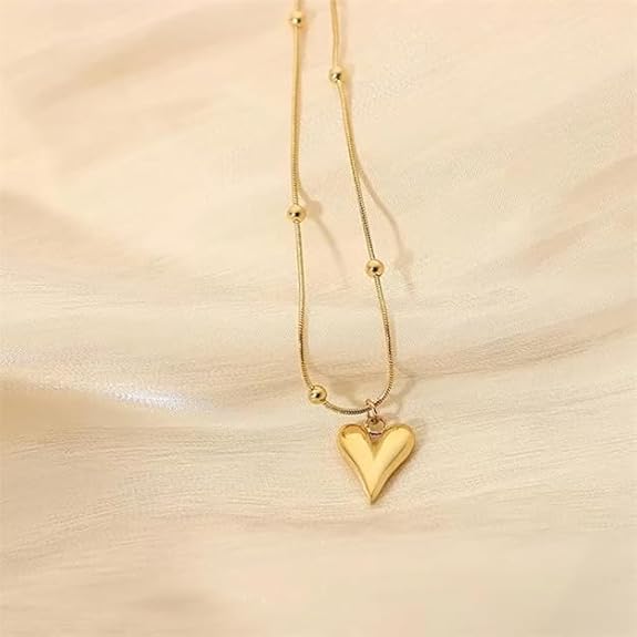 Elevate your style with this stunning gold-plated heart pendant necklace, a perfect fusion of sophistication and heartfelt symbolism. Crafted with meticulous attention to detail, the sleek V-shaped heart charm exudes modern minimalism while still holding a romantic essence. The fine, smooth chain with delicate beaded accents adds an extra layer of elegance, making it versatile enough for both everyday wear and special occasions.